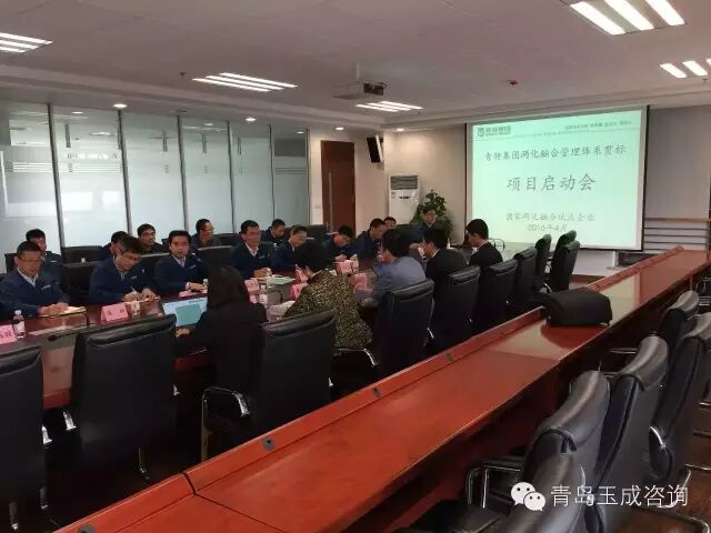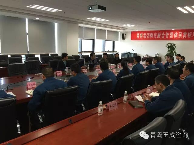 由徐工信息山东分处——青岛玉成咨询有限公司与青特集团签订的两化融合贯标管理体系贯标项目启动会已于2016年4月27日上午圆满结束。 出席本次启动会的有青特集团董事、副总裁纪弈春先生及青特集团各部门一把手领导,徐工信息营销总经理李檀先生及徐工信息两化融合咨询专家章其伟先生等一行三人,以及青岛玉成咨询董事长王玉女士等一行二人。